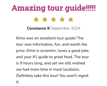 Tips are not included and is completely at the discretion of the guest. If you enjoyed our service, feel free to leave a tip and review us on TripAdvisor or Google My Business.